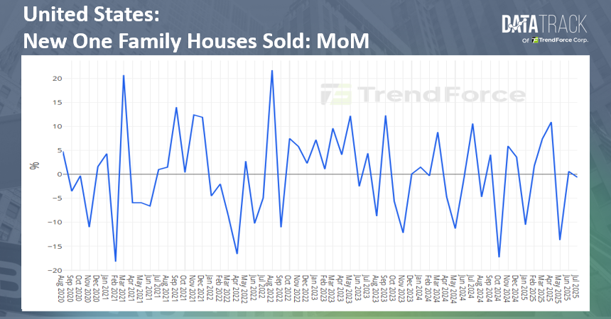 According to data released jointly by the U.S. Census Bureau and the Department of Housing and Urban Development on August 25, 2025, the seasonally adjusted annual rate of single-family new home sales in July 2025 stood at 652,000 units, a slight 0.6% decrease from June. Despite the minor decline, this figure exceeded market expectations of 630,000 units. Year-over-year sales dropped 8.2%, marking the lowest level since October 2024 and recording the seventh consecutive month of negative growth — the longest slump in nearly three years.